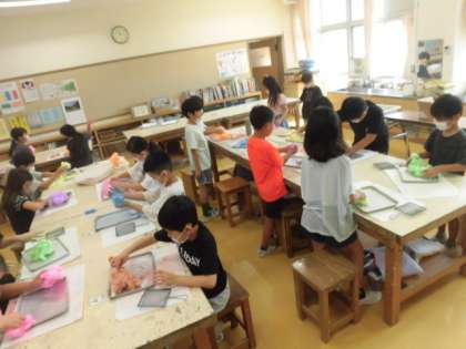 ひとり一色つくり、色綿を交換してあにまるをつくります。