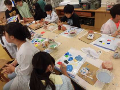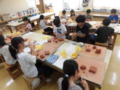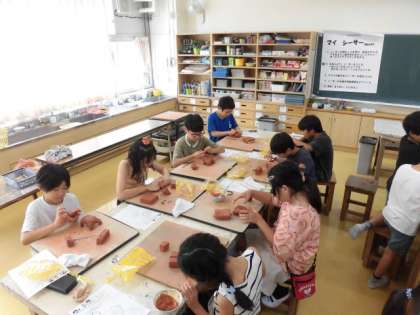 初めての土粘土で、シーサーづくりに挑戦しています。