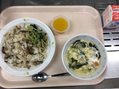 本日の献立 ビビンバ 牛乳 わかめスープ みかんゼリー