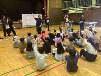 4年生は、英語体験教室で世田谷区のALT教員と英語でやり取りをしました。
