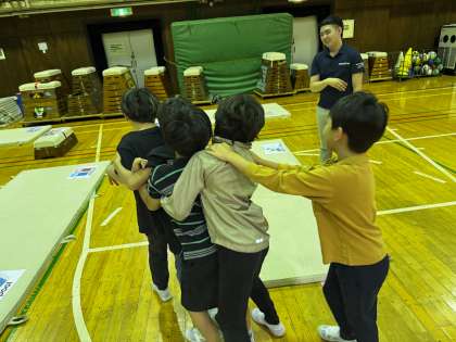友達を導くためにグループの中で適切なフレーズを考え、大きな声で呼びかけていました。
