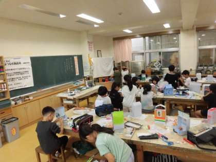図工でその学びをさらに楽しく表そうと、自分がつくりたいお店を紙粘土や色画用紙などでつくりました。