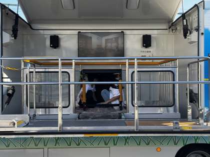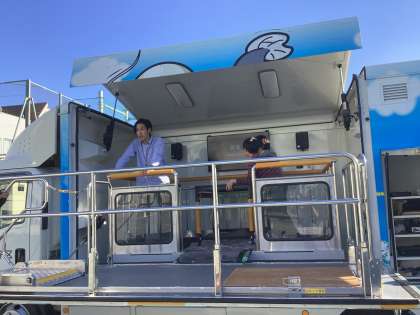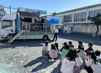 4年生は避難訓練の一環で、起震車による地震体験を行いました。