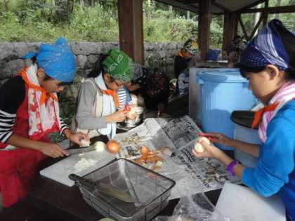 今回は中町小学校と一緒の2泊3日でした。好天に恵まれ予定されていた全ての行事を実行できました。とりわけ、雨乞山山頂からの眺めは素晴らしいものでした。
