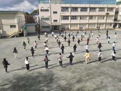 よいお天気の中、校庭での練習が始まりました!