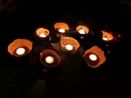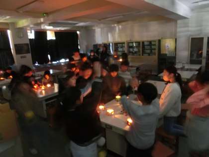 理科室にて、キャンドルに火を灯し、こぼれる光を楽しみます。