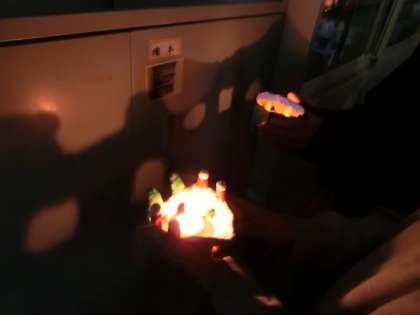 電灯の中ではキャンドルの炎もあまり目立ちません。