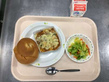 本日の献立 パインパン 牛乳 豆腐のグラタン 野菜のカレードレッシング