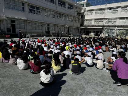 体育着などに着替えている際には、ハンカチを持っていないこともあるため、服の袖などで口を覆うように指導をしています。ご家庭でも、煙の動きや身の安全の確保についてお話しください。