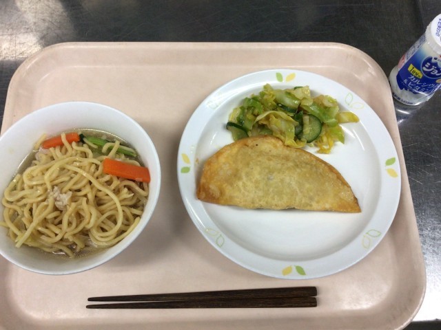 本日の献立 〜6年生を送る会 リクエスト給食〜 しょうゆラーメン ジョア ツナとポテトのパリッと揚げ