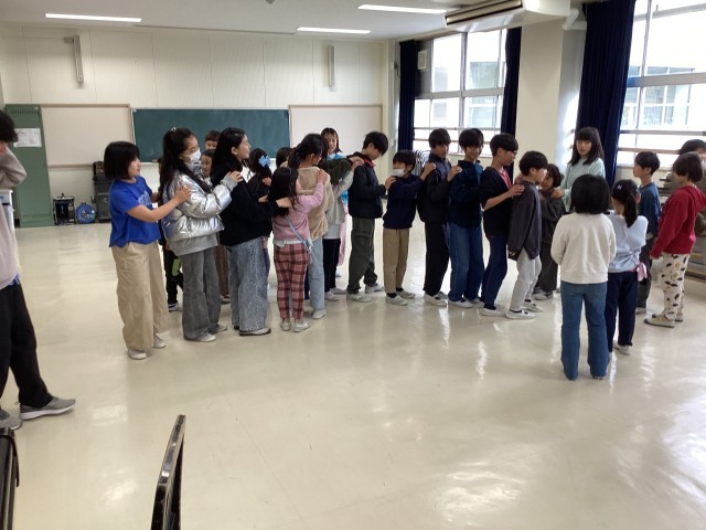 それぞれの場所では、ハンカチ落としやつながりジャンケン、なんでもバスケットなど5年生が考えたゲームで楽しみました。