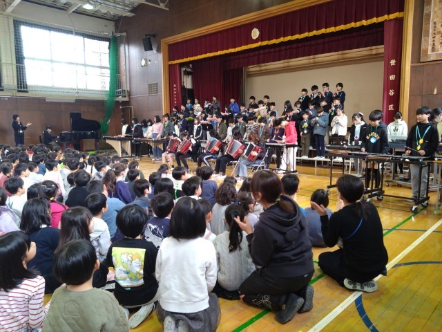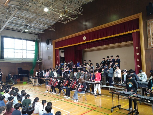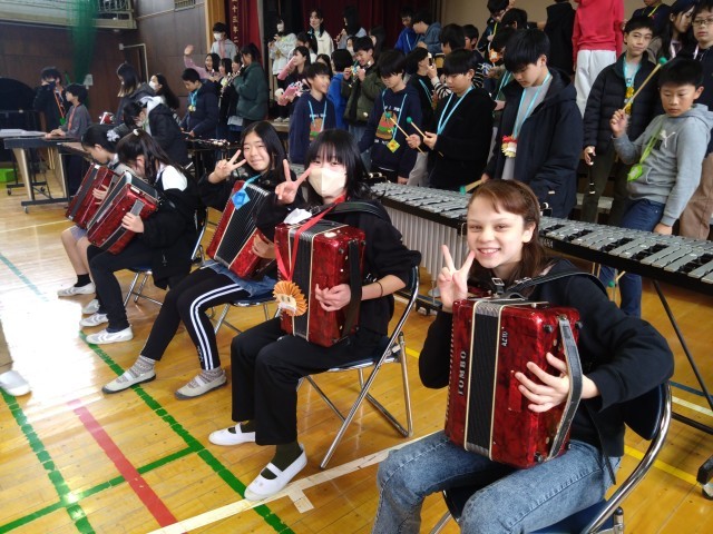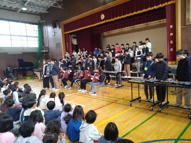 各クラスで卒業を祝う会をしていただいたので、お礼の合奏を贈りました。