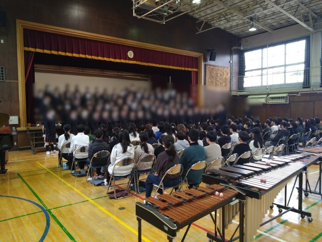 中学生の迫力ある歌声に圧倒され、卒業式での合唱に向けて気合が入りました。