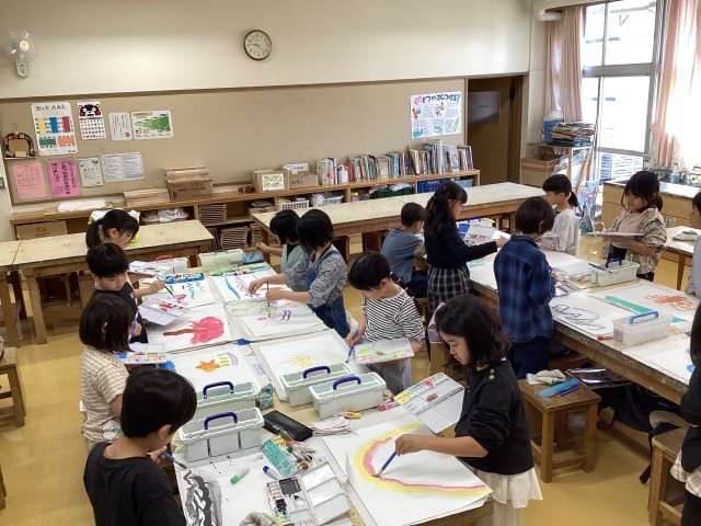 「きれいな色ができたよ」「ここがうまくいったよ」「いっぱいかけてたのしい」など、楽しい声がたくさん聞こえました。