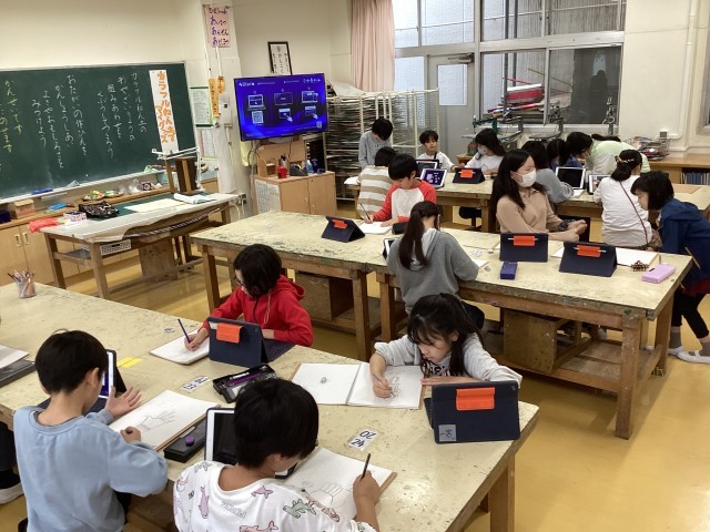 イラストクラブは「絵が上手くなりたい!」という希望から自分の手やおたがいのポーズなどをクロッキー。