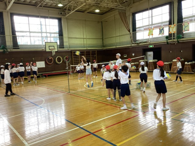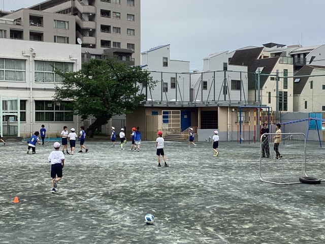 サッカークラブは練習試合、今年度新設されたバレーボールクラブはネットを使ってボール慣れなどをしていました。