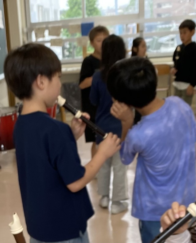 リコーダーの学習が始まりました。はじめはリコーダー語で自分の名前を言って相手に聞いてもらい、リコーダーに親しみました。