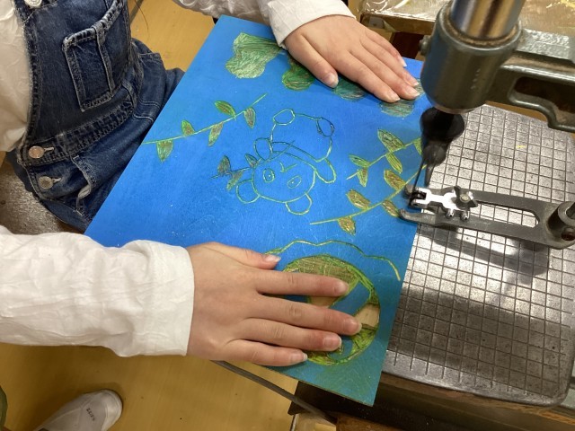 「振動がすごい」「刃から目を離さない」「板を押さえるのが大変だ」などに気を付けながら取り組みました。