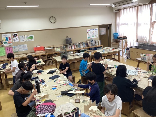 板を曲線で切り、棒を組み合わせて糸のこハウスづくりも進みました。