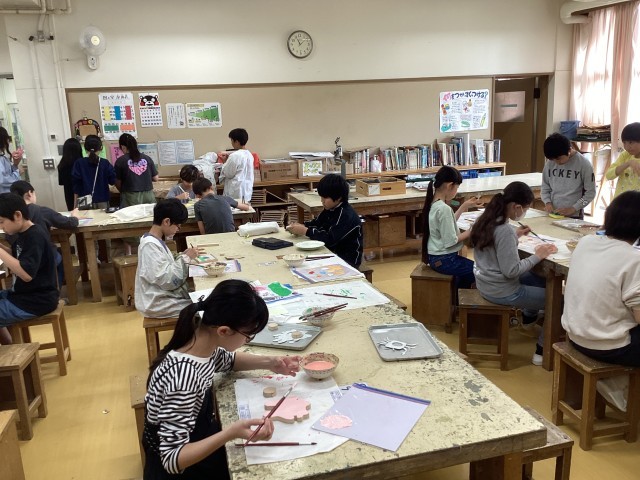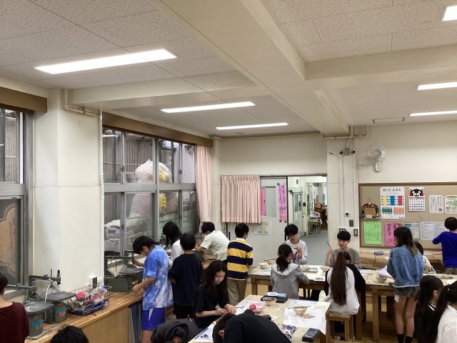 5年生の時よりも板が厚くなったので、ゆっくりと切ることが必要です。カーブはさらにゆっくりと切らなければなりません。その違いに驚きながらも一所懸命に切っていました。