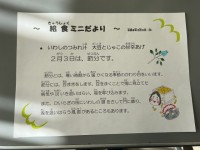 本日の献立 きつねうどん 牛乳 ちくわの磯辺揚げ キャベツの乾物あえ