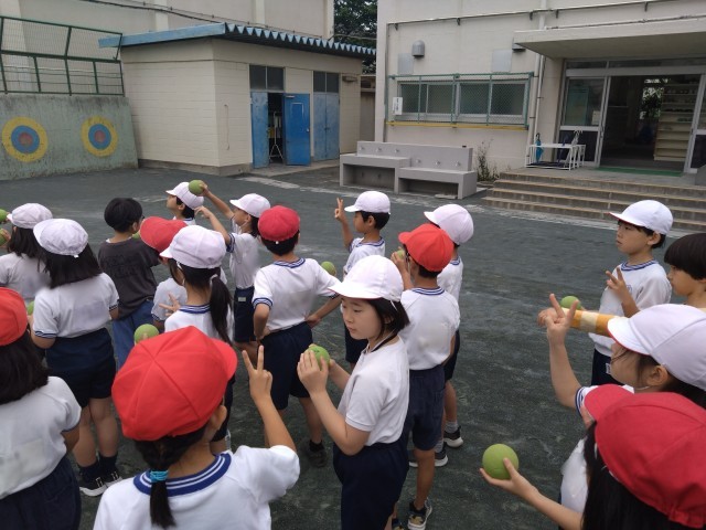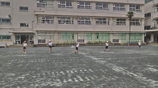 12日はソフトボール投げがありますので、よーく話を聞いて、練習をしました。