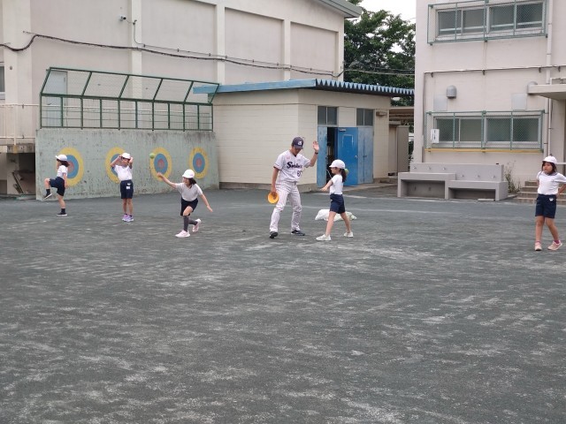 本日は、東京ヤクルトスワローズのOB選手、三輪先生をお迎えして、投げ方教室が行われました。