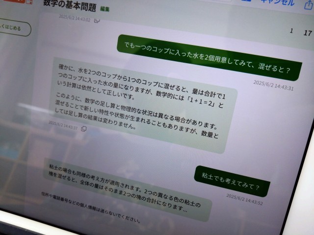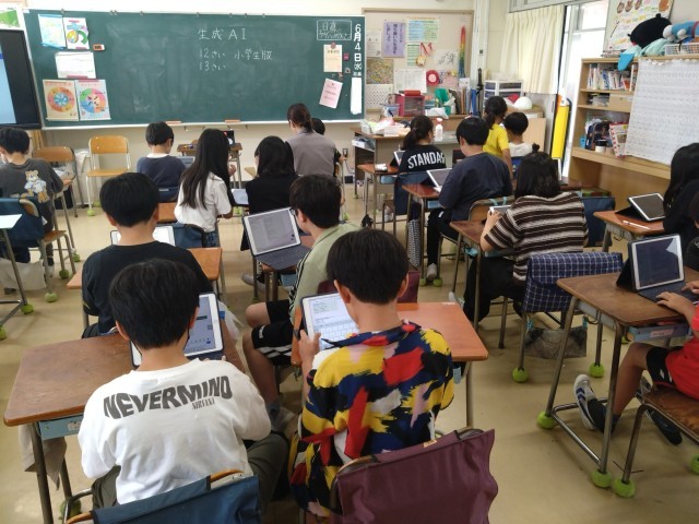 駒繋小学校では、小学生版の先生AI*を導入していますので、安全に活用できます。