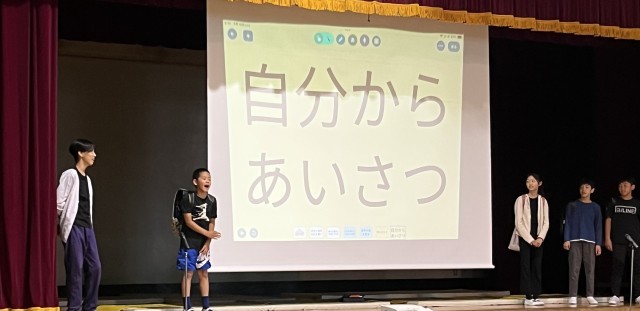 全校児童に向けて「あいさつの大切さ」について呼びかけました。