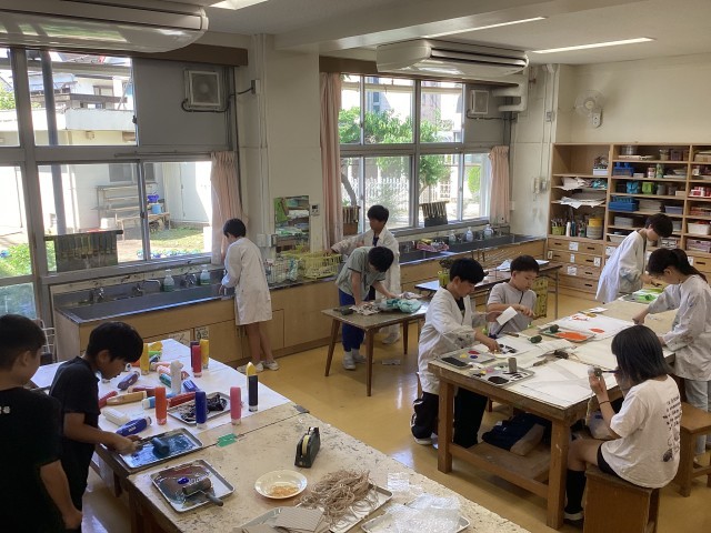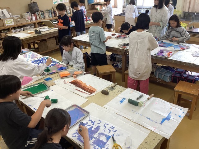 3年生では紙版画、4年生では木版画でローラーに触れてきました。