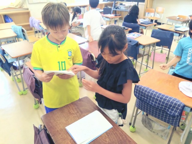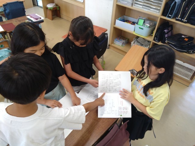 おたがいの答えが違ったときには、どこの考え方に違いがあるのか自分たちで見つけています。