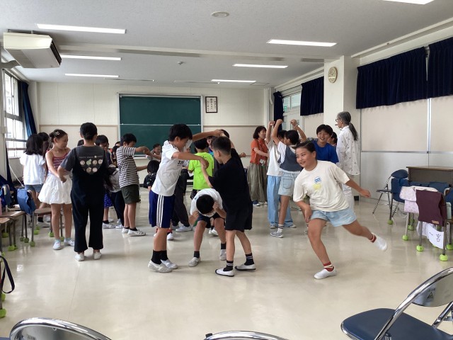 学級活動の時間にゲストティチャーをお迎えして、「いつでも どこでも だれとでも 楽しむ」ということをめあてに活動しています。