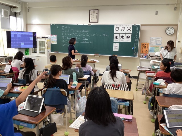 5年生は、今年度からより本格的になった外国語活動で、自分のオリジナル時間割を発表しました。