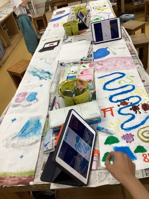 この3メートルの絵はある大きなものになります。5年生と6年生の大きく長い絵は、1〜4年生の作品とどのように形になっていくのか、展覧会をお楽しみに!