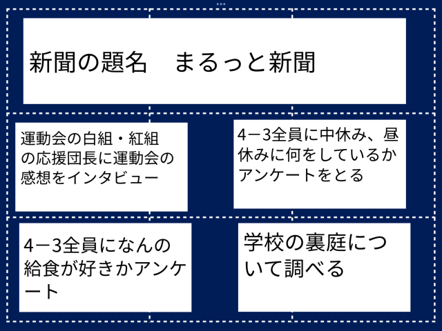 国語の学習で、新聞の工夫を見付けて、自分たちも新聞を書く学習をしています。じっくり新聞を読んで様々な工夫を見付けることができました。これから、自分たちで取材をして新聞を書いていきます。