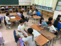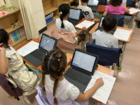 現在、1年生は作文の学習に取り組んでいます。学校にある面白い楽器についてお家の人...