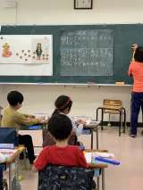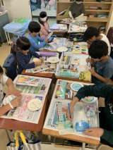 展覧会に向けて、作品づくりに励んでいる子どもたちです。月曜日には、ペア学年で「つ...