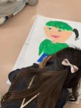 力一杯、そして楽しく演じた学芸会。1年生の図工の時間に、学芸会での自分の姿を画用...