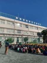 今日は低学年の遠足で、しながわ水族館に行きます。出発式をしました。みんなよく話を...