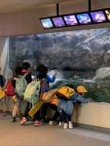 水族館到着です。集会写真を撮って、いよいよ入場です。1年生と2年生が仲良く見学し...