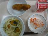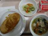 本日の献立 あげパン 牛乳 春雨スープ 野菜のドレッシングかけ 本日のおもな産...