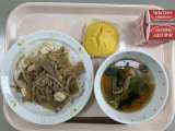 本日の献立 ごはん(有機米) 牛乳 豚肉と大根のうま煮 野菜のからしじょうゆかけ...