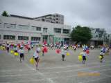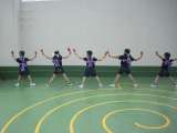 今年の1年生は,「学園天国」の曲に合わせて踊ります。 2色のポンポンを持って,ジ...