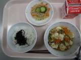 本日の献立 わかめごはん 牛乳 春巻き もやしときゅうりのごま風味 ...
