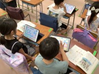 45分間の授業に一生懸命取り組む姿、ノートに書くことやiPadのロイロノートの使...