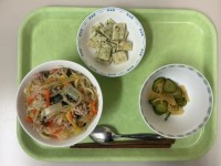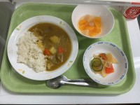 本日の献立*チキンカレーライス*牛乳*シャキシャキ野菜*フルーツカクテル 具だく...