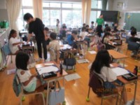 水書に挑戦しています。一人一人が自分にまつわる漢字を書きました。習っていない漢...