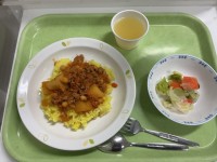 本日の献立*チリビーンズライス*ジョア(ブルーベリー)*グリーンサラダ*りんごゼ...