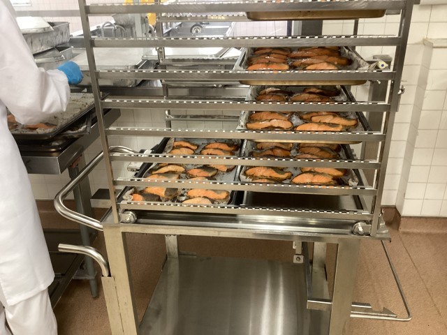今日は毎月1度の有機米を炊いた給食です。白ごはんをしっかりと食べられるような献立にしています。鮭にみそこうじダレを漬けて焼き、ごはんと一緒に子どもたちはしっかりと食べていました。