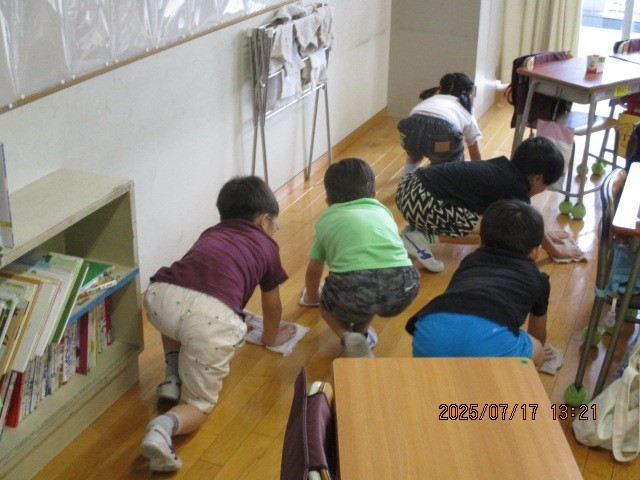 今日の5時間目は、全校で大掃除でした。1学期過ごした教室や靴箱などを分担して掃除しました。「来たときよりも美しく」を心にとめて、一生懸命に掃除をしていました。